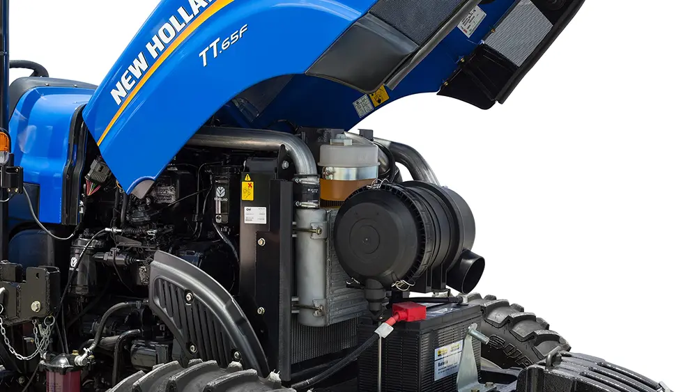 Os tratores agrícolas TT e TTF da New Holland contam com motores FPT S8000 MAR-I de 3 cilindros e com reserva de até 27% que proporciona menor consumo e troca de marchas.